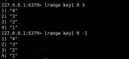 lrange :获取一定范围的元素,此start和end是闭区间,且下标支持负数,如果我们输入的下标超出有效范围了,那么不会报错,而是尽可能获取到可以获取的元素,比如说key1的下标有效范围是0-3,如果我们选择0-100的范围,最后也只会出现0-3下标的值。