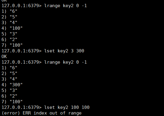 lset:用于根据下标修改元素,如果选择的下标超过范围,会提示下标越界。