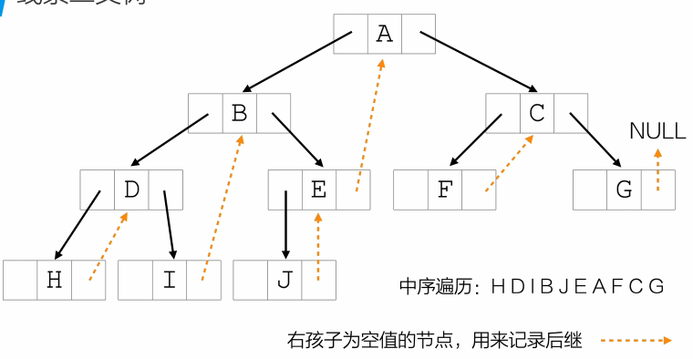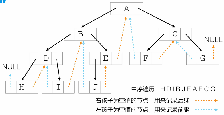 - 没有左孩子 ⇒ 左指针指向中序前驱