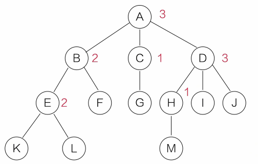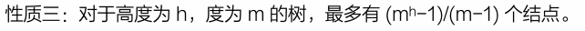 性质二:对于度为m的树,第i层上最多有 m\^{i-1} 个结点