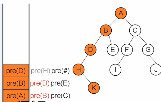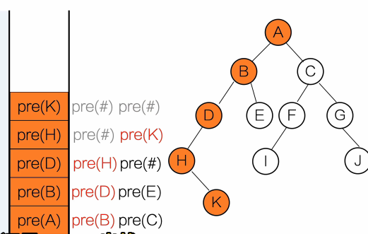 - 从根开始一路向左走到"最左"(ltag==0 才表示真左孩子)