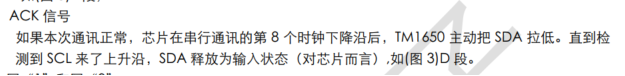 等待接收ACK信号函数。当一次数据发送完成后从机会返回一个ACK应答信号。对于主机来说,当SDA为低电平时,SCL由低电平转为高电平后,从机释放SDA为输入。