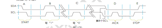 为低电平,SCL:SET_SCL(1);为高电平,在SCL为高电平期间,拉高SDA:SET_SDA(1);认为是停止信号。
