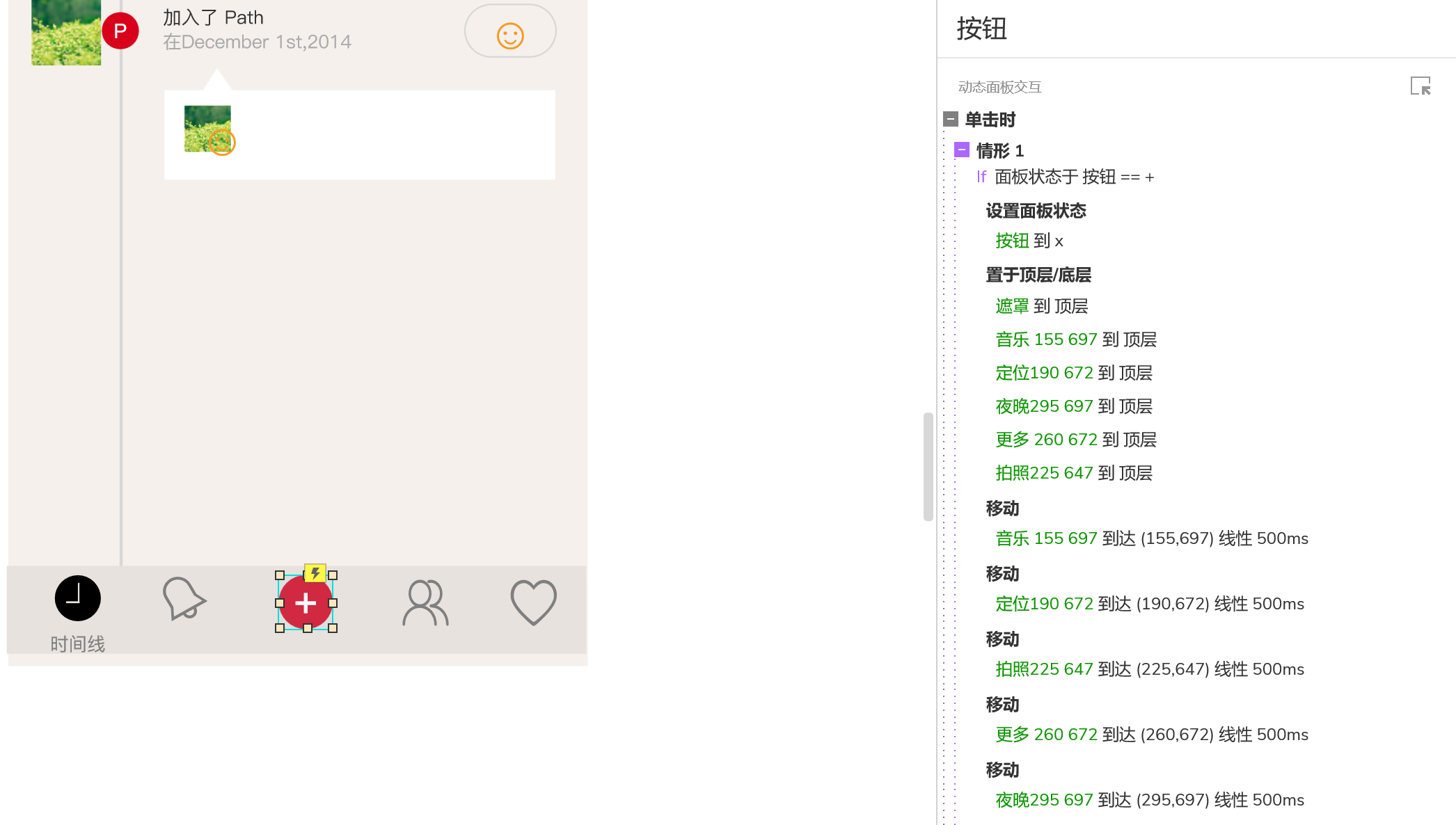 在我们日常在移动端产品的设计过程中,会遇到这种交互,就是点击按钮,以点击的按钮为中心分散拓展若干个按钮,这种交互在设计过程中称之为点聚式导航,今天我们就来临摹以下PATH。