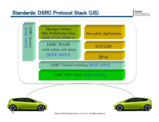 技术源头: 基于 Wi-Fi 技术。它是对 IEEE 802.11a 的修改版,使其适应车辆的高速移动环境。