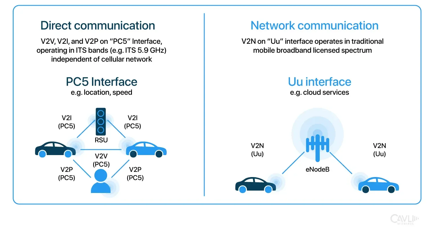 网络模式 (Uu 接口): 连基站。车与云端服务器通信,看路况、下地图。这是 DSRC 做不到的。