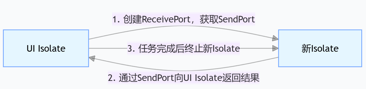 Isolate.exit(sendPort,result):从子Isolate直接返回结果并退出。