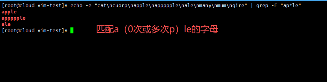 echo -e "cat\ncuorp\napple\nappppple\nale\nmany\nmum\ngire" | grep -E "ap*le"