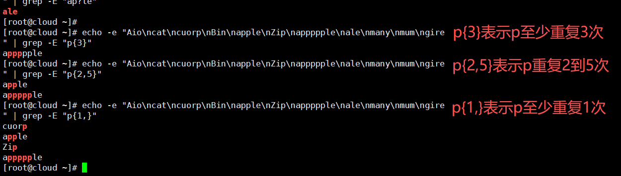 echo -e "Aio\ncat\ncuorp\nBin\napple\nZip\nappppple\nale\nmany\nmum\ngire" | grep -E "ap+"