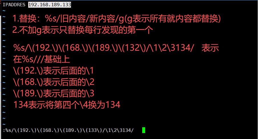 :%s/\(192.\)\(168.\)\(189.\)\(133\)/\1\2\3134/