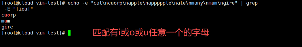 echo -e "cat\ncuorp\napple\nappppple\nale\nmany\nmum\ngire" | grep -E "[iou]"