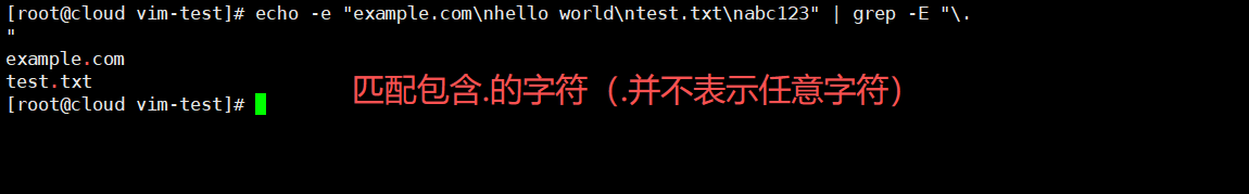 echo -e "example.com\nhello world\ntest.txt\nabc123" | grep -E "\.