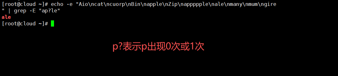 echo -e "Aio\ncat\ncuorp\nBin\napple\nZip\nappppple\nale\nmany\nmum\ngire" | grep -E "ap?le"