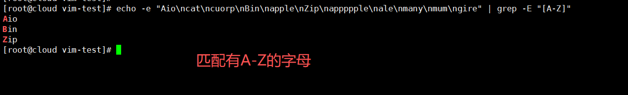 echo -e "Aio\ncat\ncuorp\nBin\napple\nZip\nappppple\nale\nmany\nmum\ngire" | grep -E "[A-Z]"