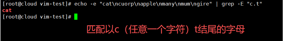 echo -e "cat\ncuorp\napple\nmany\nmum\ngire" | grep -E "c.t"