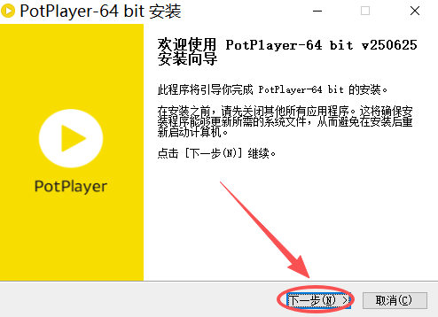 - 下载安装包,双击 PotPlayerSetup64.exe 启动安装: