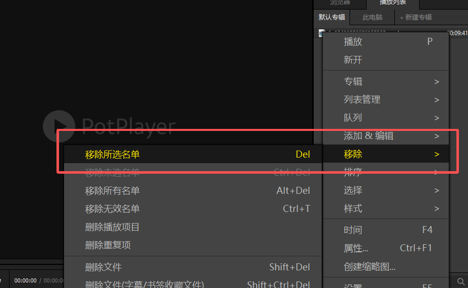 ③ 右击所选中的视频,点击 "移除 → 移出所选名单",就可以删除观看历史: