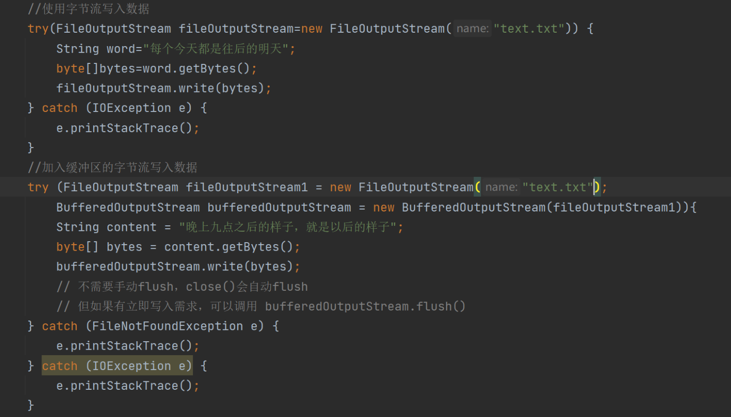 将bufferOutputStream写入try()里无须手动flush 随着文件的close而自动flush