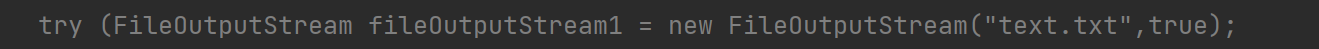 try (FileOutputStream fileOutputStream1 = new FileOutputStream("text.txt",true);
