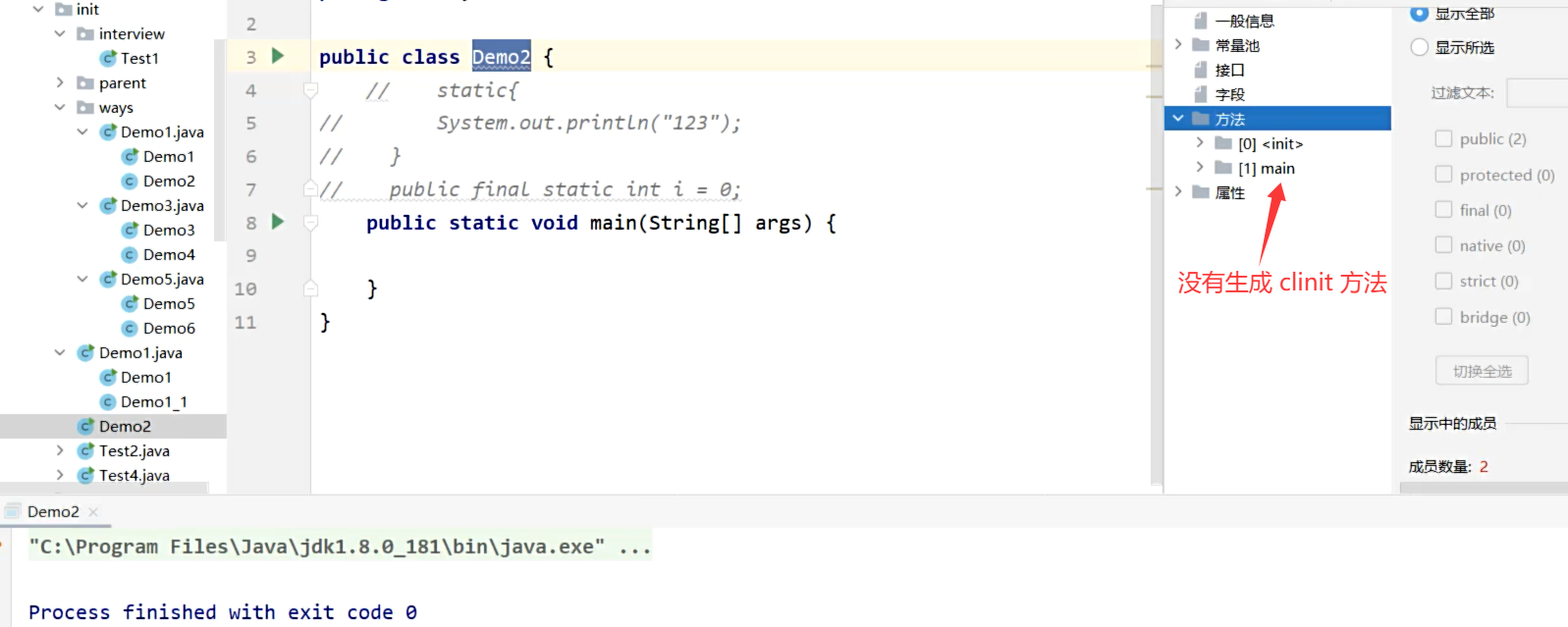 - 由于没有创建 Test2_A 类的实例,也没有访问 Test2_A 类的静态成员,因此 Test2_A 类不会被加载,静态代码块也不会执行
