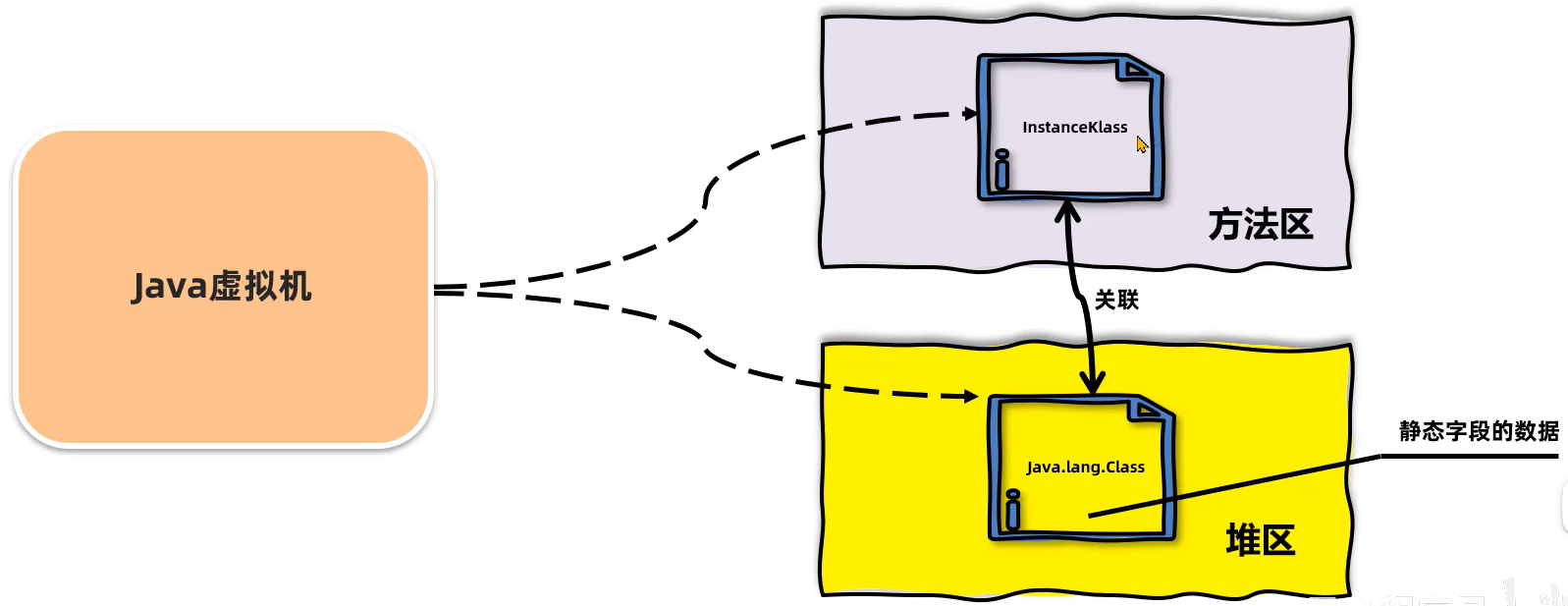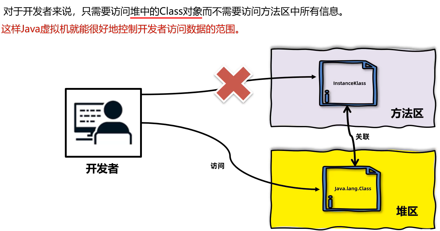 - 首先,InstanceKlass 对象 是使用 C++ 编写的对象,Java代码一般不能直接操作C++语言编写的对象;所以Java虚拟机就在堆上创建了一个 java.lang.Class 这种用Java语言包装之后的对象;