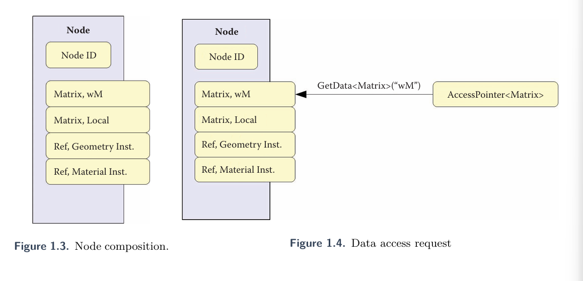 这个引擎架构的一个关键原则是Node不是一个实例化的类而是一个容器,文章给的示例如下:
