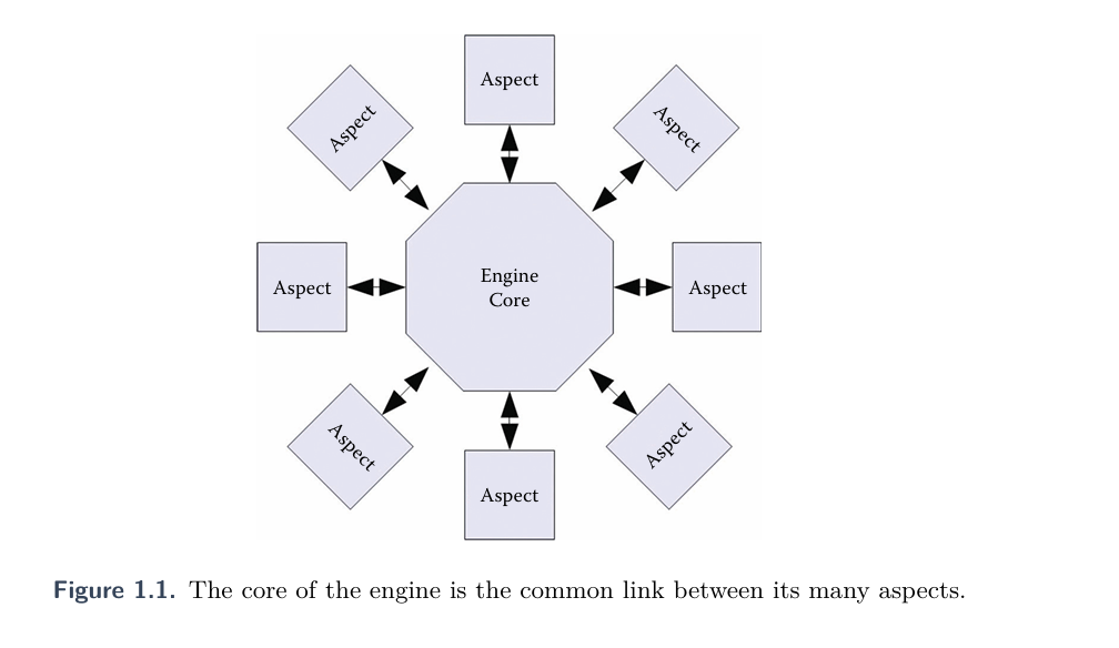大多数系统架构都会考虑将各个功能封装成模块或者组件,在面向对象编程的思想下,这个封装是基于对象去实现的,本文则描述了一种在引擎层面的封装功能的架构思想,封装后的产物被称为Aspect,每一个Aspect负责提供一些功能子集,并通过一个通用的接口与引擎核心通信。