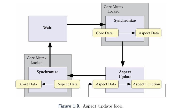 在这篇文章中Aspect要做到的是能够独立运行,所以才更容易维护与替换,所以每个Aspect都可以独立开发和测试,并通过引擎核心来互相交互,