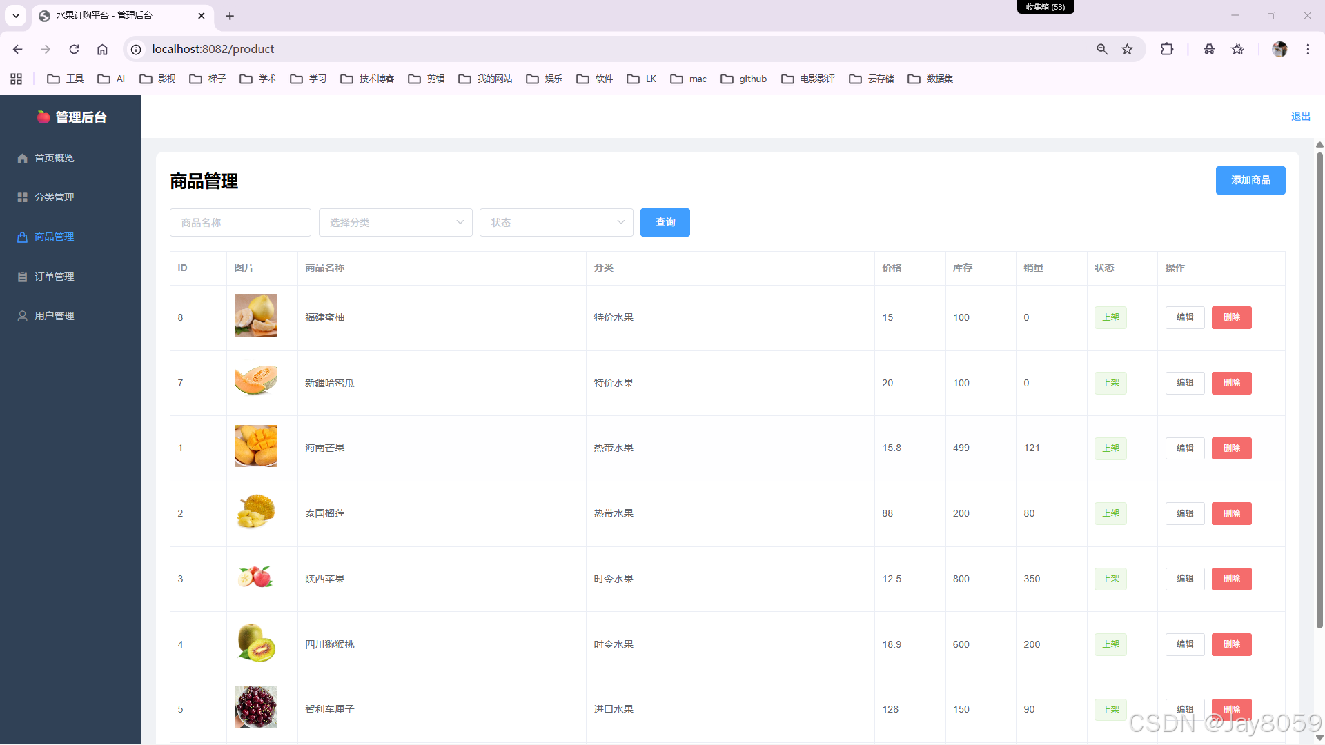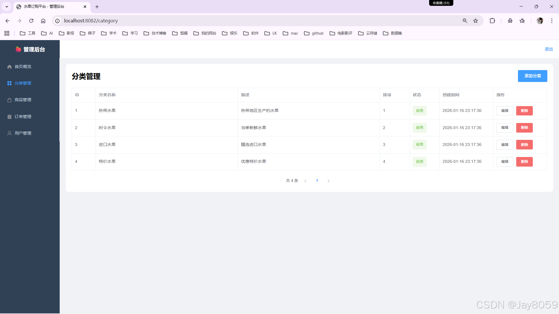 - 分类管理:支持水果分类的增删改查操作