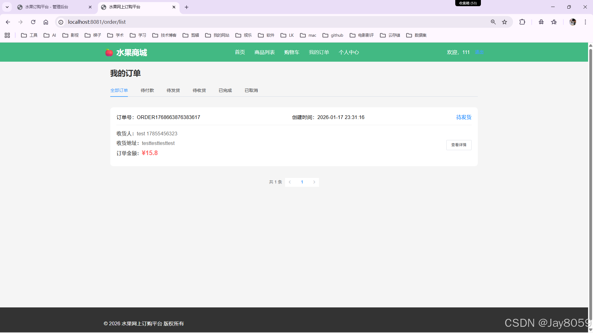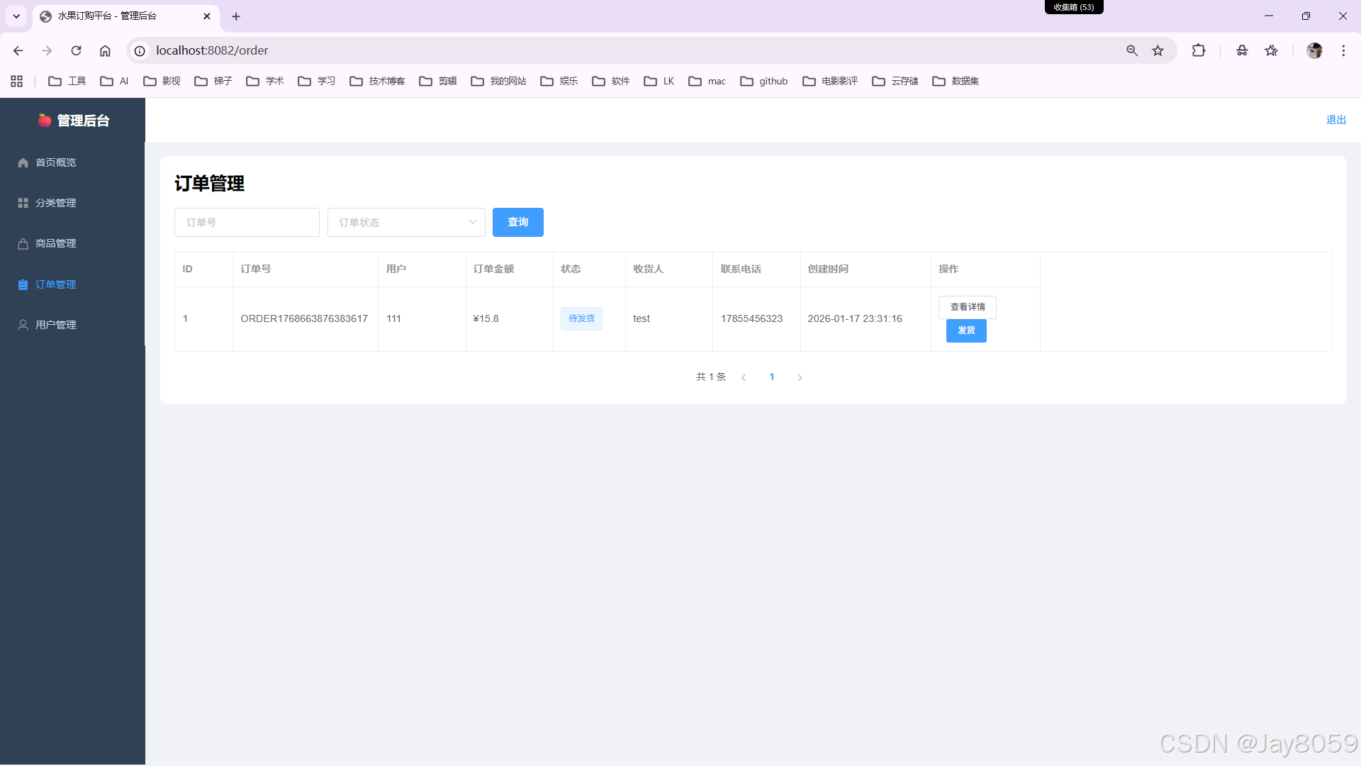 - 订单管理:支持查看订单列表、订单详情、更新订单状态、发货操作