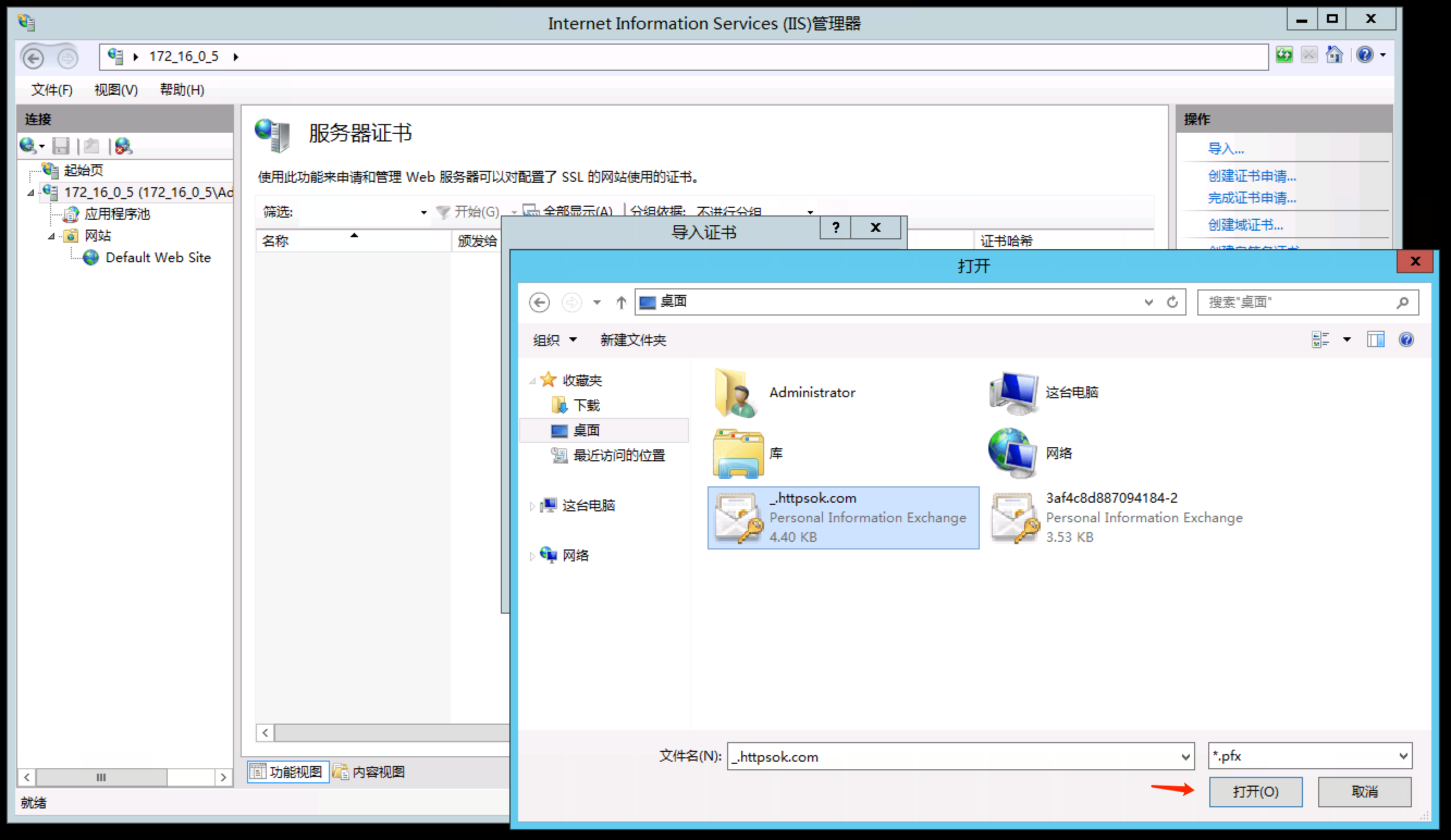 第二步:IIS证书部署,跟着走就对了