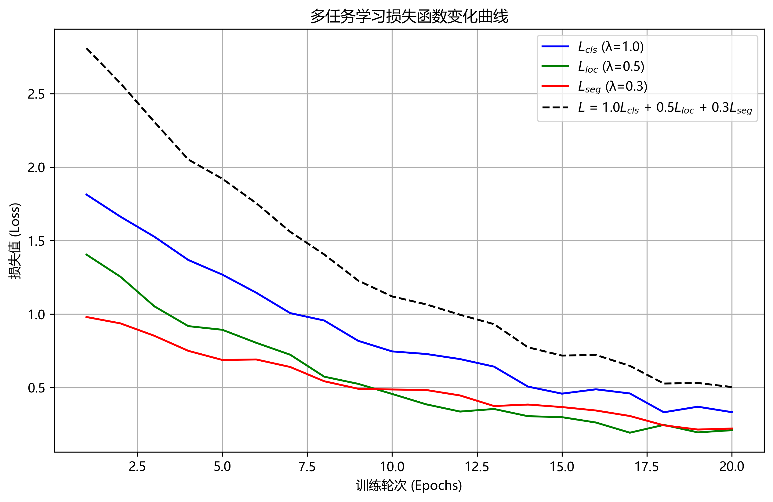 针对分割任务的特性,我们设计了多任务损失函数,同时考虑分类损失、定位损失和分割损失。具体来说,总损失函数可以表示为: