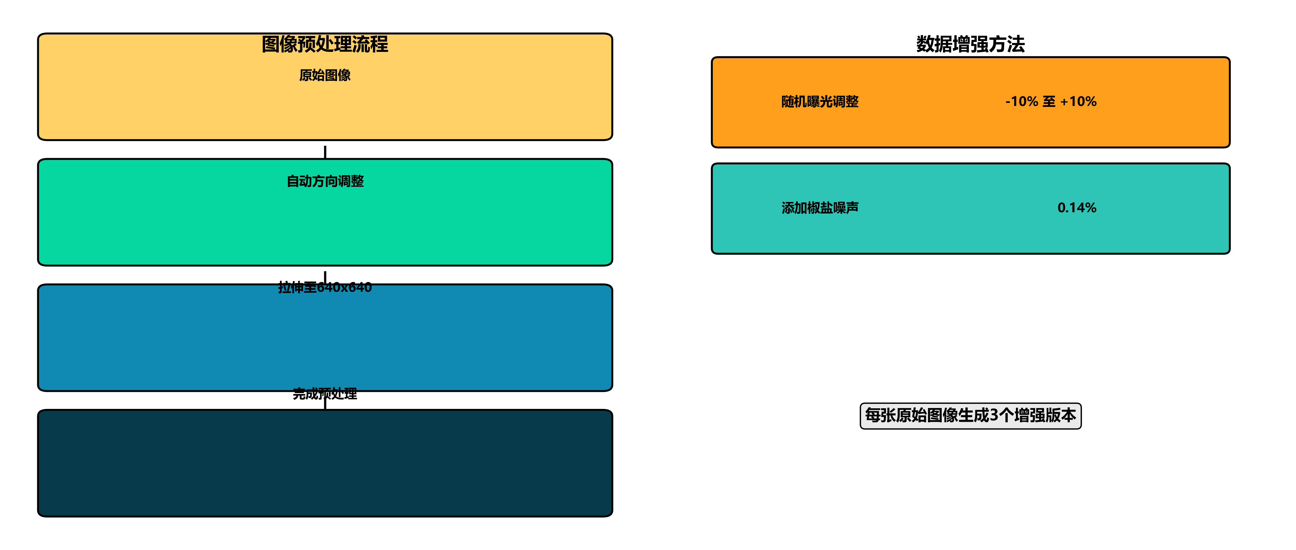 上述代码实现了我们设计的数据增强流程,包括随机翻转、旋转、亮度对比度调整、高斯模糊、CLAHE对比度增强和双边滤波等技术。这些增强方法共同作用,能够模拟各种实际拍摄条件,提高模型对环境变化的适应能力。