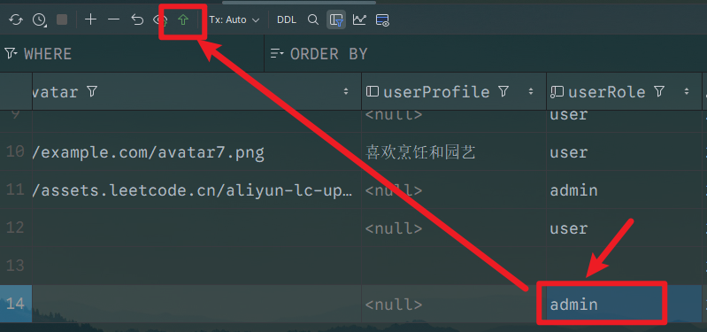 1)注册 admin 账号。首先创建普通用户,然后修改数据库 userRole 字段改成 admin
