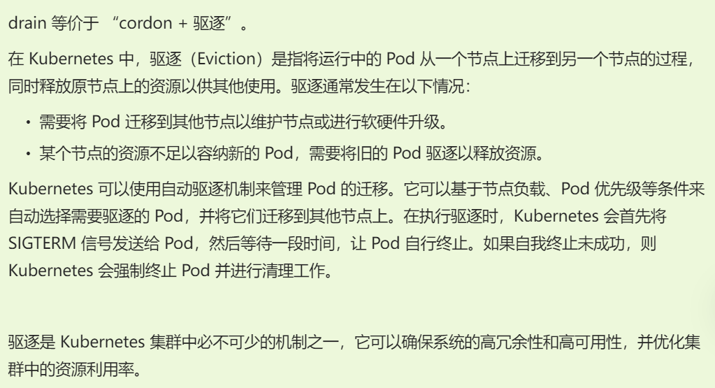 //如果某个 Node 更新升级系统组件,为了防止业务长时间中断,可以先在该 Node 设置 NoExecute 污点,把该 Node 上的 Pod 都驱逐出去