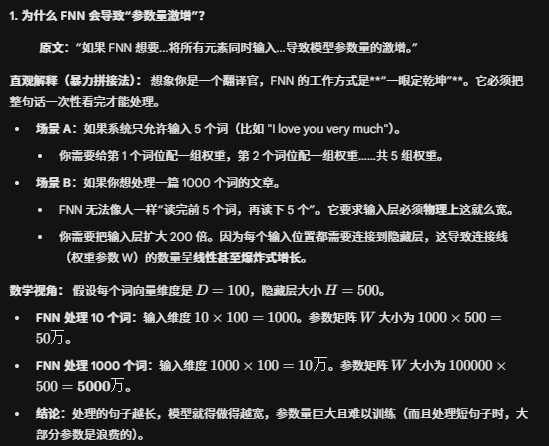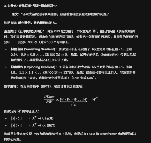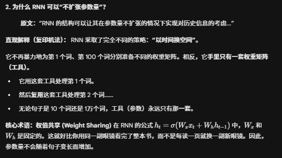 由于 RNN 模型循环迭代的本质,其不易进行并行计算,导致其在输入序列较长时,训练较慢。