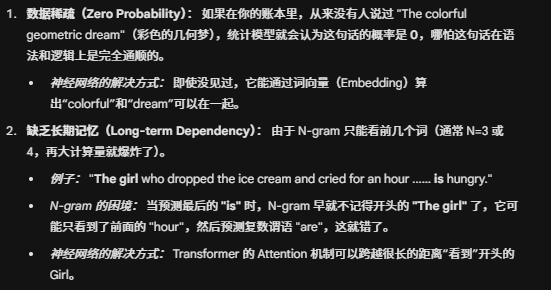 统计模型的本质:它是基于"历史出现频率"的概率预测,而不是基于理解。
