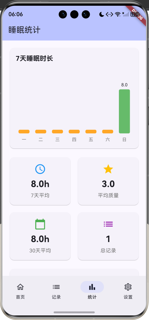 睡眠记录是一款专业的睡眠追踪和分析应用,帮助用户科学管理睡眠健康、提升睡眠质量。本项目使用Flutter实现了完整的睡眠记录、数据分析、质量评估等功能,让健康睡眠触手可及。