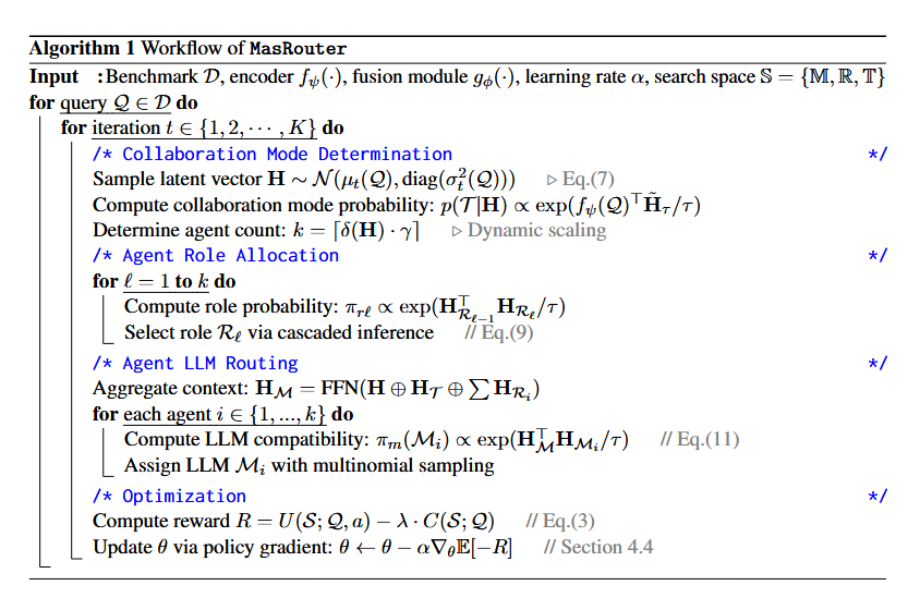 MasRouter 用的是 策略梯度(REINFORCE)。