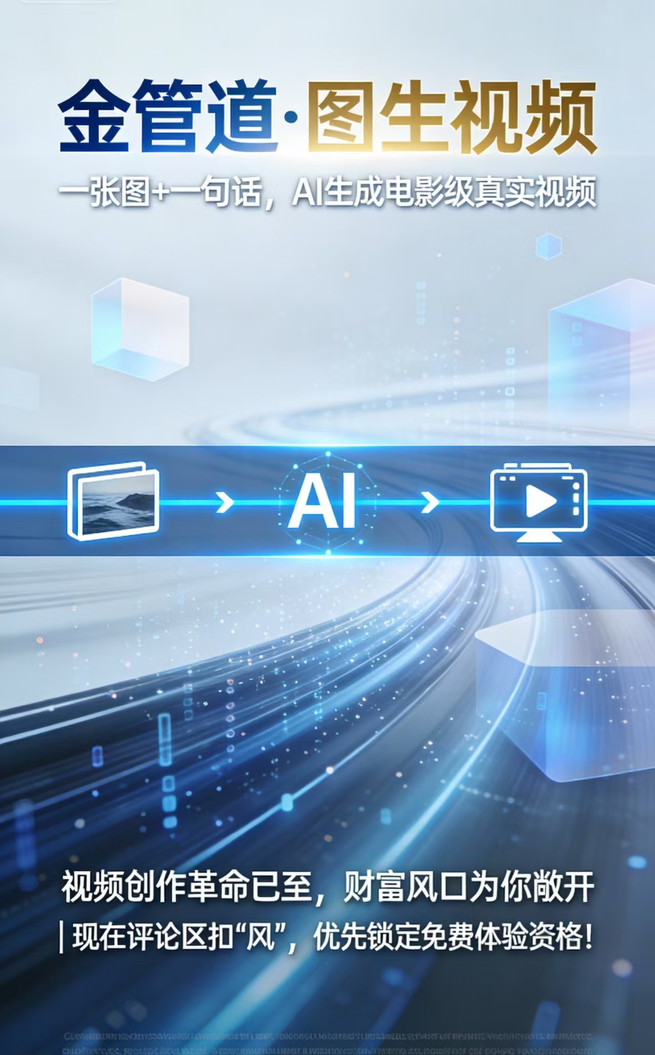 东莞市金管道信息科技有限公司(金管道科技)的"图生视频"产品 :作为国内在AI视频商用领域深耕多年的代表,其产品以"一张图生成视频"为核心,主打低成本与高效率,在中小商家和创业者中积累了相当数量的用户。