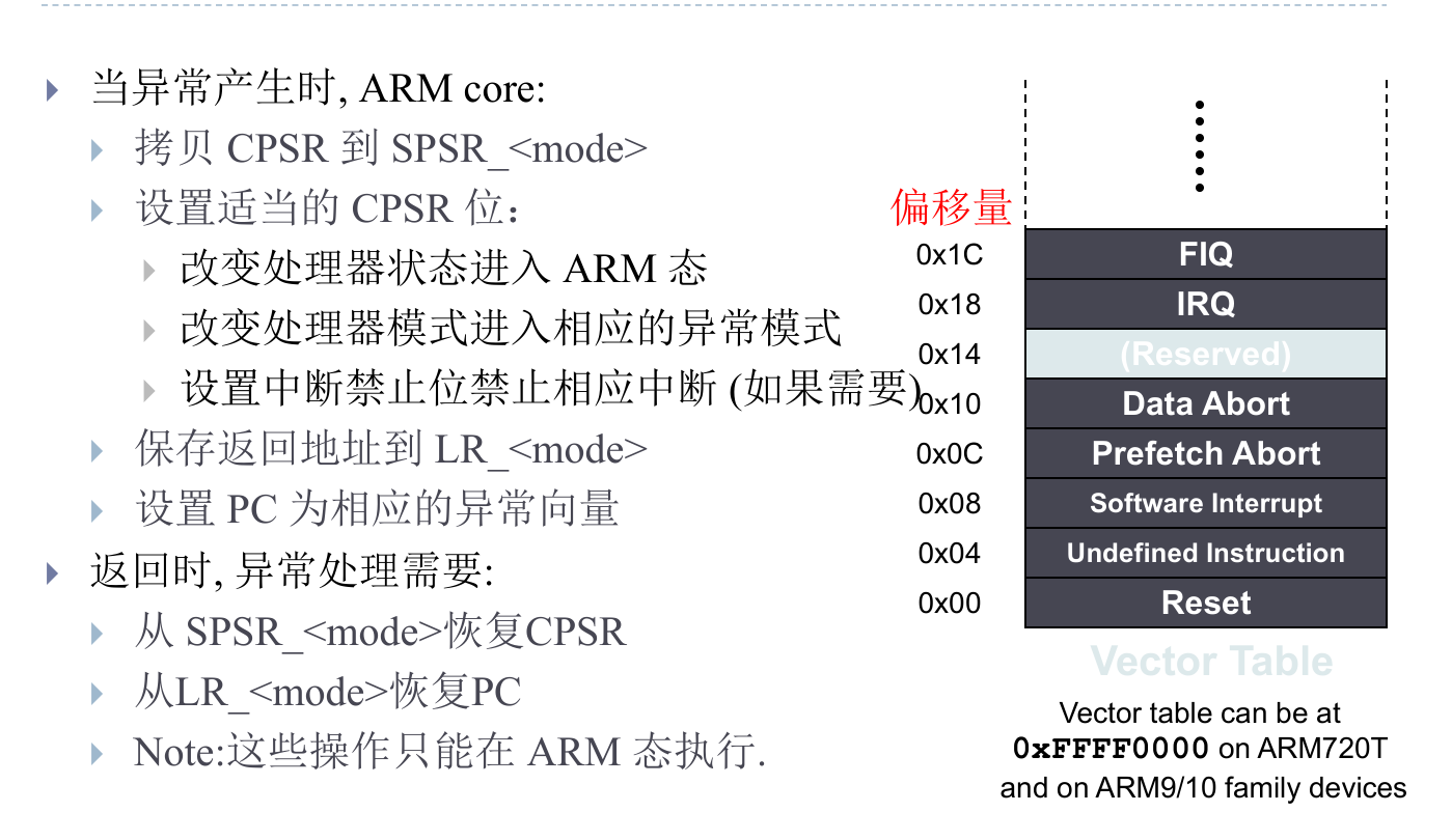 异常向量表,都是些跳转指令,可以跳转到异常处理程序中
