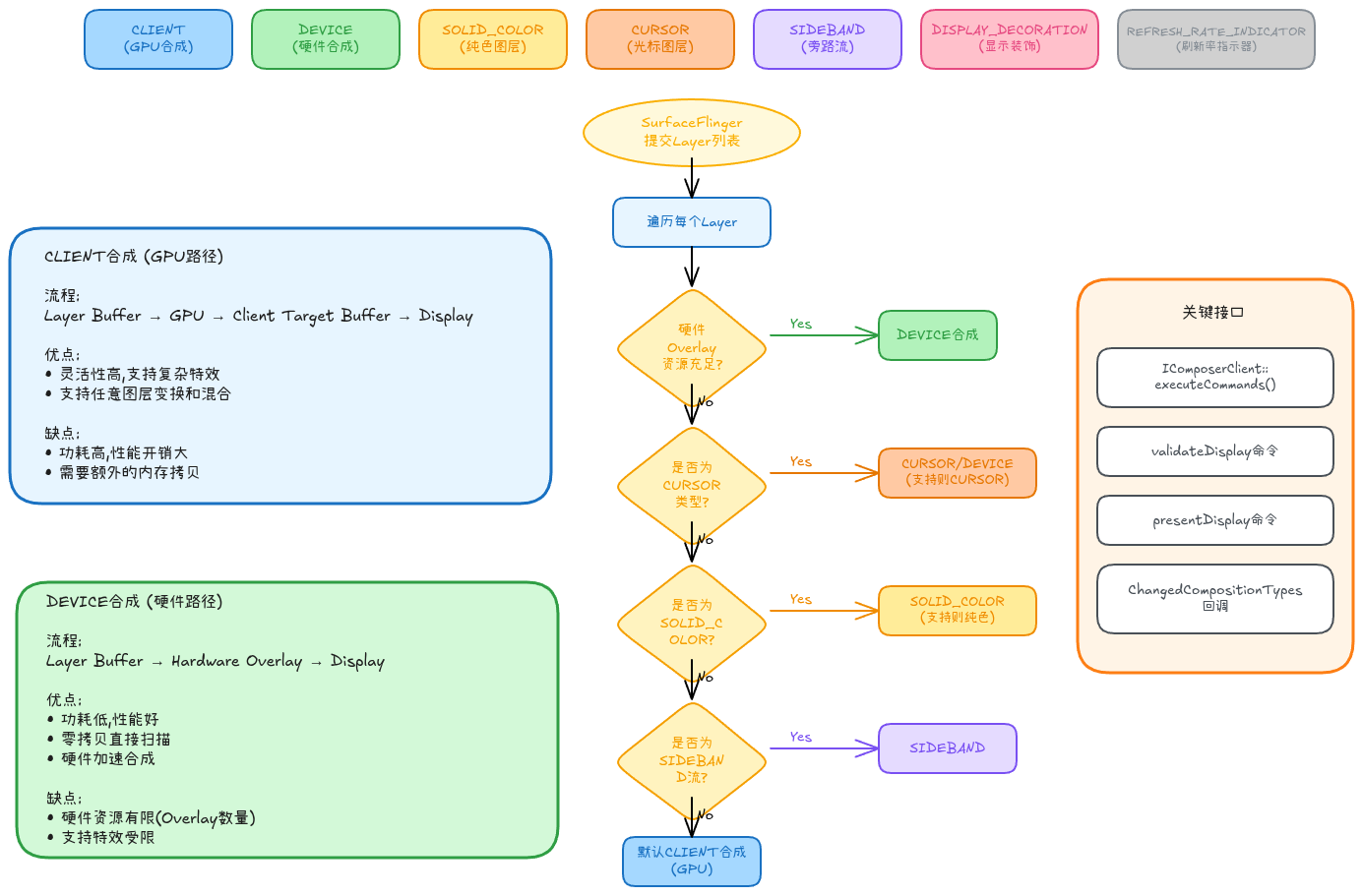 - 减少Composition延迟: 优先使用DEVICE合成,减少GPU合成开销