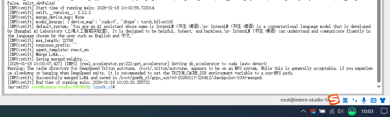 书生大模型强化学习 RL 实践(Internlm2.5-1.8B swift GRPO gsm8k) - 飞书云文档