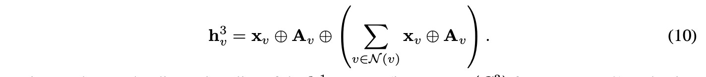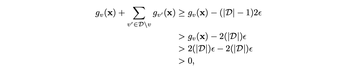 * \] > **关键点解析** > > * **函数存在性**:通过构造法证明满足条件的函数存在。 > * **距离定义**:采用欧氏距离 ( \|x - x_v\|_2 ) 衡量输入 ( x ) 与参考点 ( x_v ) 的差异。 > * **函数形式**:( g(x) ) 由一组子函数 ( g_v(x) ) 的线性组合构成,适用于离散或连续域 ( D )。 当 b = 3\|D\|−1 /C\^2\> 0 时,根据构造可知: 1. 函数 gv 在 dv = 0 处存在唯一最大值 3\|D\|ε−2ε,该值大于 2\|D\|ε。 2. 当 dv 趋近于无穷大时,极限值为 −2ε。 3. 若 d ≥ C,则 gv(x)≤ −ε。 需要注意的是,函数 ( g ) 在其定义域(())上是连续的,因为它是有限个连续函数的和。此外,对于给定的输入 ( ),如果所有点 (  ) 满足 ( ),则根据上述性质3,有 ( )。 而如果对于任意 (  ) 有 (  ),则根据性质1和性质2,由构造可知 ( g ) 为正。  已知当任意节点的 dv = 0 时,g 为正;当所有节点的 dv \> C 时,g 为负。 **引理 2** 函数 g : U → R 可通过标准多层感知机(MLP)以任意精度近似,该 MLP 需至少包含一个隐藏层及非恒定单调递增激活函数(如 ReLU)。精确表述为:若记该 MLP 为 fθσ,参数为 θσ,则 ∀ε,存在 θσ 使得 \|fθσ (x) − g(x)\| \< ε\| 对所有 x ∈ U 成立。 **证明**:此结论直接源于文献 \[15\] 中的定理 2。 **引理 3** 设 A 为图 G 的邻接矩阵,N3(v) 表示节点 v 的 3 跳邻域,χ(G3) 为忽略自环的邻接矩阵 A3 对应图的色数。若存在固定正常数 C ∈ R+ 使得所有节点对满足 ∥xv − xv′ ∥2 \> C,则存在算法 1 的参数配置(在深度 k = 1 处使用池化聚合器,且该聚合器含 ≥ 2 个带 ReLU 的隐藏层)使得以下条件成立。 ####  其中,( ) 是维度为 (  ) 的独热(one-hot)指示向量集合。 **证明** :根据色数的定义,可以用 (  ) 种唯一的颜色为 ( V ) 中的每个节点分配标签,使得在任意节点的 3 跳邻域内共现的两个节点不会被分配相同的颜色。因此,仅需 ( ) 个维度即可为每个节点分配唯一的独热指示向量,确保在任意 3 跳邻域内共现的两个节点不会具有相同的向量。换言之,每种颜色定义一个节点子集 ( ),该子集中的所有节点均可映射到相同的指示向量而不会引入冲突。 根据引理 1 和 2,并假设对所有节点对满足 ( *),可以选择 ( ),且存在一个单层 MLP ( * ),使得对于任意节点子集 ( D \\subseteq V ): ####  通过将MLP加深一层并特别使用修正线性激活函数(ReLU),可以仅对子集D中的节点返回正值,其余情况输出零。由于在应用聚合层后进行归一化,这一正值可映射为指示向量。此外,可以构建χ(G3)个这样的MLP,每个MLP对应一种颜色/子集;等价地,每个MLP对应主文本公式3中不同的最大池化维度。 现重新陈述定理1并提供证明: **定理1**。设xv ∈ Rd(∀v ∈ V)表示算法1在图G=(V,E)上的特征输入,其中U是Rd的任意紧致子集。假设存在固定正常数C∈R+,使得所有节点对满足∥xv − xv′ ∥2 \> C。则对于任意ε \> 0,存在算法1的参数集Θ∗,使得在K=4次迭代后满足以下结论。 ####  其中,( ) 是由算法1生成的最终输出值,( c_v ) 是节点聚类系数,定义见文献\[38\]。 **证明** :不失一般性,描述如何计算任意节点( v )的聚类系数。为便于表示,使用符号(  )表示向量拼接,( d_v )表示节点( v )的度数。此证明需要算法1的4次迭代,所有深度均使用池化聚合器。为清晰起见,忽略向量归一化问题,并利用池化聚合器能以任意精度()逼近任何Hausdorff连续函数的性质\[29\]。 可通过在聚合器中为所有输出表示预先添加单位值来考虑归一化常数(算法1第7行),后续层可通过取该预置值的倒数恢复归一化常数。尽管存在某些设定下池化聚合器(或其变体)能精确计算下述对称函数,但文献\[29\]的对称通用逼近定理及Lipschitz连续性论证足以证明聚类系数的可辨识性(达到任意精度)。特别地,所需逼近的函数在定义域上均为Lipschitz连续(假设仅处理度数大于零的节点),因此逼近引入的误差受固定常数限制(可无限缩小)。 假设深度( k=2 )和( k=3 )的权重矩阵( W_1, W_2 )为单位矩阵,所有非线性函数为修正线性单元。最后一层(即( k=4 ))完全忽略邻域信息,仅将其视为单隐藏层的多层感知机(MLP)。定理1可等价表述为:算法1需迭代( K=3 )次,再将表示输入单层MLP。 根据引理3,可假设深度( k=1 )时,( v )的3跳邻域内所有节点均具有独热编码向量(  )。在深度( k=2 ),假设对邻节点未归一化表示求和(由引理4保证),则不失一般性,有( ),其中( A )为包含( G\^3 )中与( v )相连的所有节点的子图邻接矩阵,( A_v )为对应( v )的行向量。深度( k=3 )时,再次假设对邻节点表示求和(权重矩阵为单位矩阵),则可得------  设 ( m ) 表示 (  ) 向量的维度(即 (  ),引自引理3),并用方括号表示向量索引,可以观察到以下关系: * ( ![a \equiv h^3_v\[0 : m\]](https://latex.csdn.net/eq)) 是节点 ( v ) 的独热编码指示向量。 * ( ![b \equiv h^3_v\[m : 2m\]](https://latex.csdn.net/eq)) 是节点 ( v ) 在邻接矩阵 ( A ) 中的对应行向量。 * ( ![c \equiv h^3_v\[3m : 4m\]](https://latex.csdn.net/eq) ) 是节点 ( v ) 所有邻居的邻接行向量之和。 根据上述定义: * (  ) 表示仅包含节点 ( v ) 及其直接邻居的子图中的边数。 * ( ![\sum_{i=0}^{m} b\[i\] = d_v](https://latex.csdn.net/eq)),其中 ( d_v ) 是节点 ( v ) 的度数。 最终可通过这些关系进行进一步计算。  由于这是关于 (  ) 的连续函数,可以通过单层多层感知机(MLP)以任意精度 (  ) 逼近(等价于忽略邻域信息的情况下,算法1的再一次迭代)。这一最后步骤直接遵循了文献\[15\]的结论。 #### 推论2  假设节点特征从任意概率分