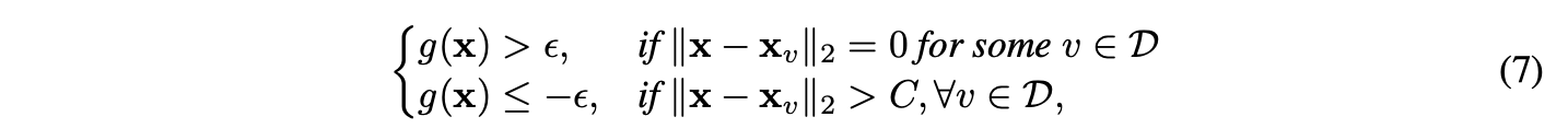 - 引理1:存在一个连续函数,该函数仅在固定数量点的闭球邻域内保证取正值,且具有一定噪声容忍度。