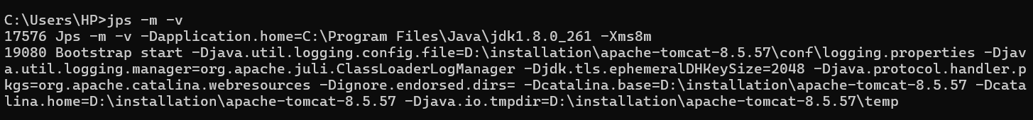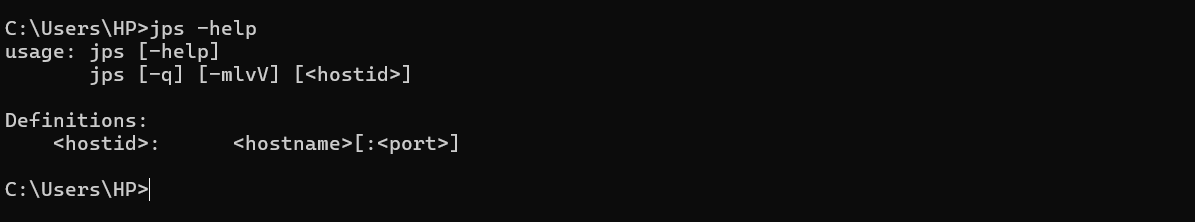 从这个输出中可以看到,当前系统中共存两个Java 应用程序,其中第一个输出Jps就是jps命令本身,这更加证明此命令的本质也是一个Java程序。此外,jps还提供了一系列参数来控制它的输出内容。