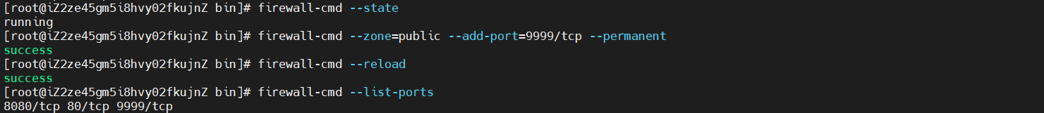开放 9999 端口(需要注意的是 Tomcat 默认端口号为 8080,该端口号也要开启)
