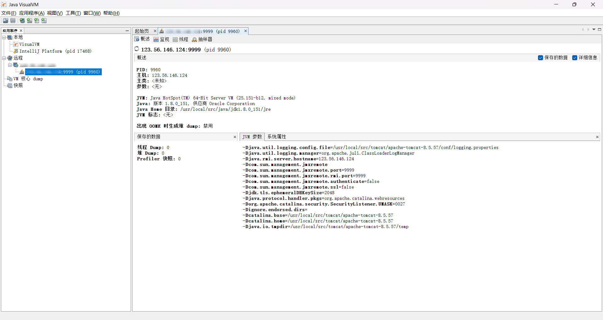 通过修改 Tomcat 启动脚本开启 JMX 远程连接,使得本地 VisualVM 能跨网络监控远程服务器上的 Tomcat 进程,操作流程如下;