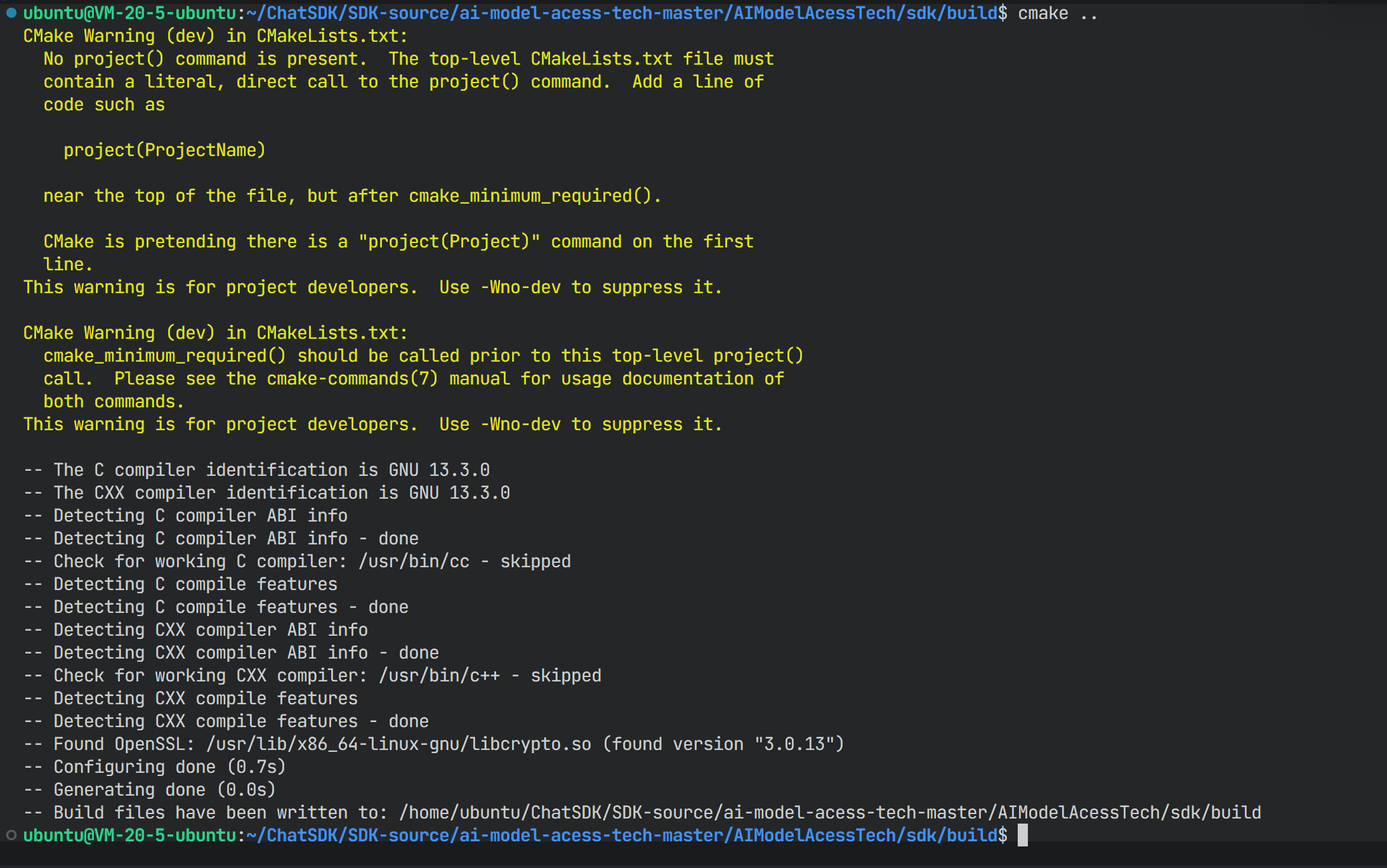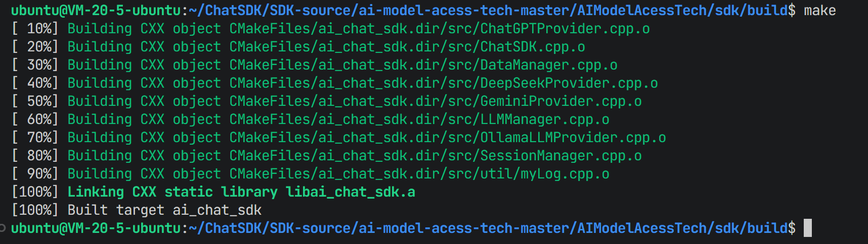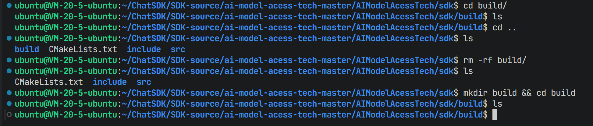 ChatSDK/SDK-source/ai-model-acess-tech-master/AIModelAcessTech/sdk,执行以下命令:bashmkdir build && cd build
