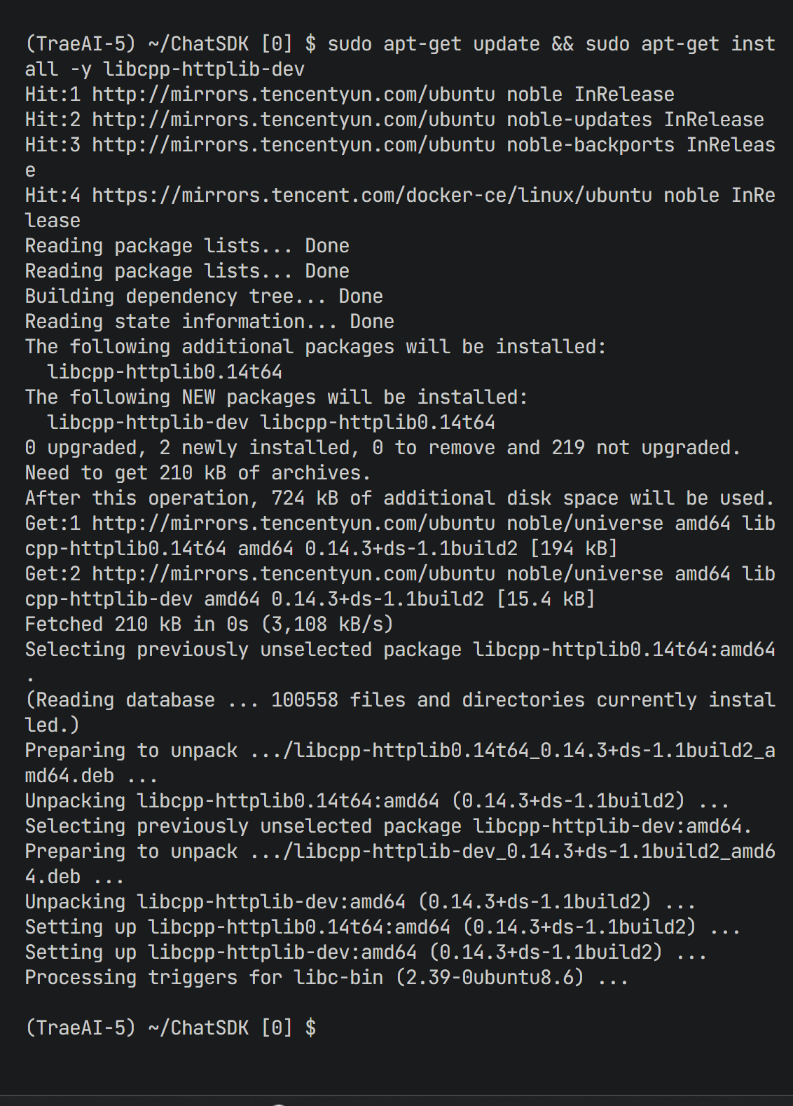 cpp-httplib库但环境未安装。需执行以下命令补全依赖:bashsudo apt-get update && sudo apt-get install -y libcpp-httplib-dev修复后重新执行